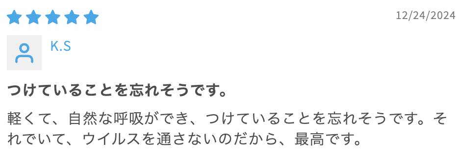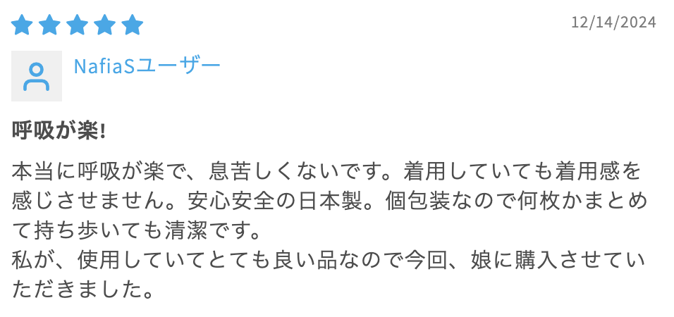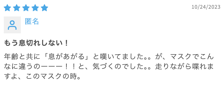 このマスクを使って頂いた多くの方々から、研究を続けてきて本当に良かったと思えるお声をいただいています。嬉しかった口コミのほんの一部をご紹介させてください。